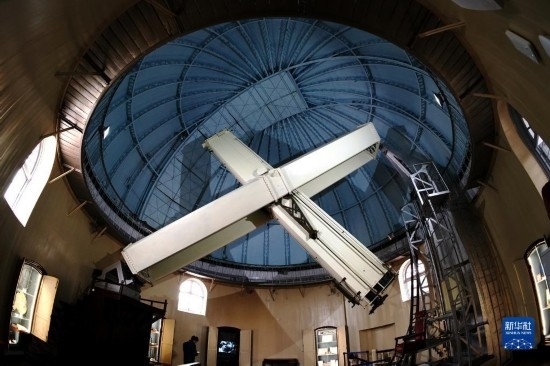 2月24日拍攝的上海佘山天文臺“鎮(zhèn)臺之寶”——40厘米雙筒折射望遠(yuǎn)鏡。