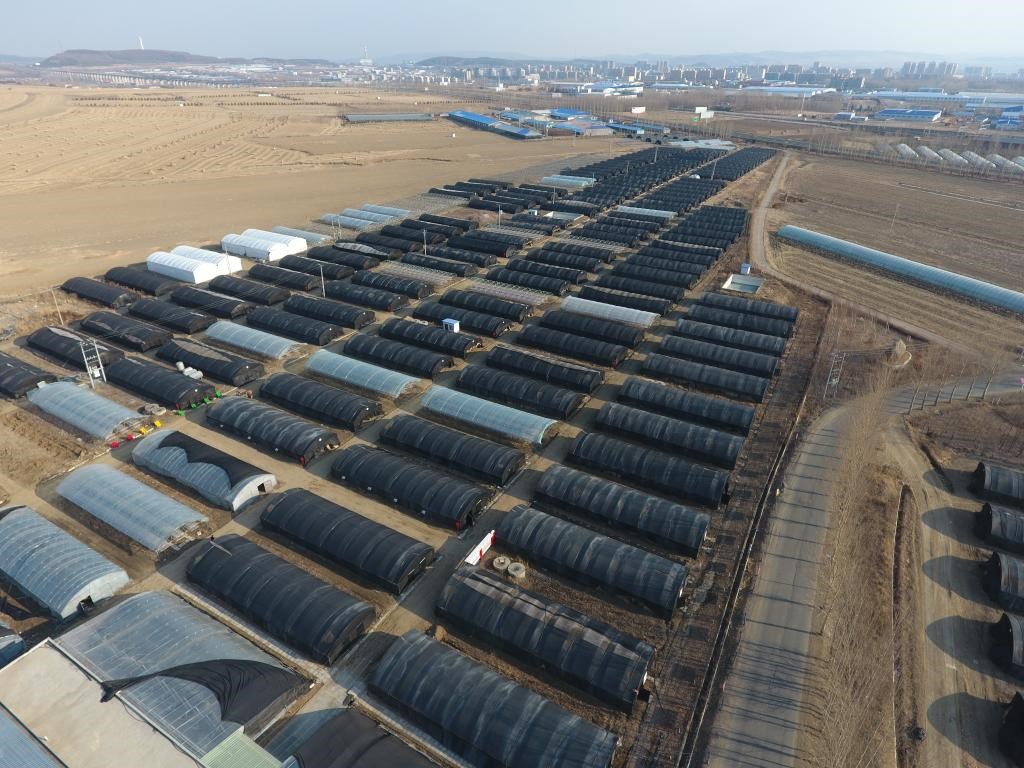 悅來頤和食用菌種植專業(yè)合作社的部分大棚(無人機照片)。新華社記者 王松 攝