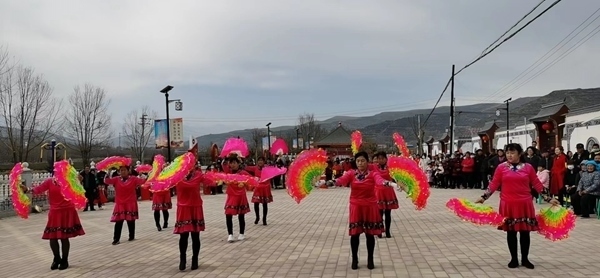 康樂縣魏家寨村文化廣場上,村民自發(fā)排練扇子舞。(受訪者供圖)