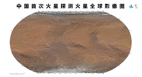 人民網(wǎng)北京4月24日電 (記者趙竹青、王震)記者從國家航天局獲悉,4月24日,在2023年“中國航天日”主場活動啟動儀式上,國家航天局和中國科學院聯(lián)合發(fā)布了中國首次火星探測火星全球影像圖。本次發(fā)布的影像圖為彩色,包括按照制圖標準分別制作的火星東西半球正射投影圖、魯賓遜投影圖和墨卡托投影加方位投影圖,空間分辨率為76米,將為開展火星探測工程和火星科學研究提供質(zhì)量更好的基礎底圖。天問一號任務獲取的包括影像圖在內(nèi)的一批科學探測數(shù)據(jù),將為人類深入認知火星作出中國貢獻。