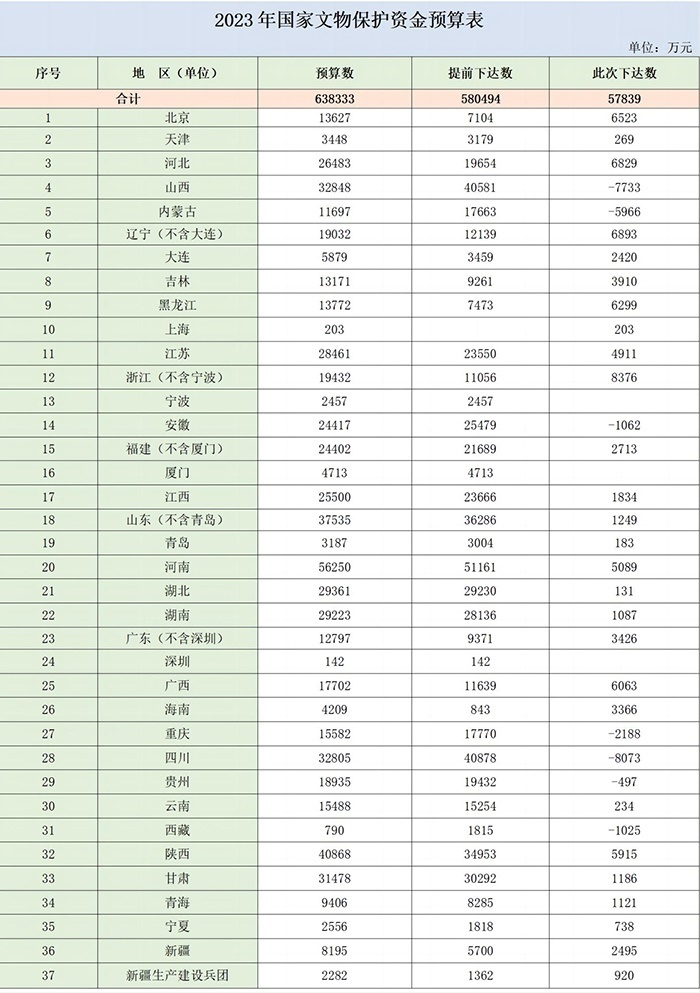 2023年國(guó)家文物保護(hù)資金預(yù)算表。圖片來(lái)源:財(cái)政部官網(wǎng)