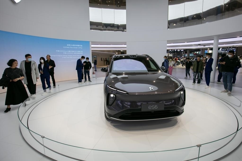 4月25日,人們在上海車展上參觀正式首發(fā)亮相的蔚來全新ES6。新華社記者王翔攝