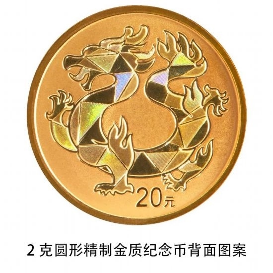 2克圓形金質(zhì)紀(jì)念幣背面圖案為裝飾龍造型,并刊面額。