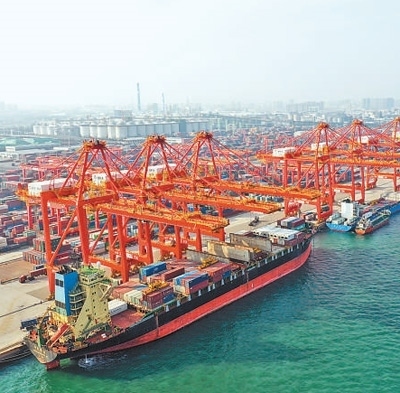 山東日照港,集裝箱碼頭正在進行裝船作業(yè)。本報記者 陳 斌攝