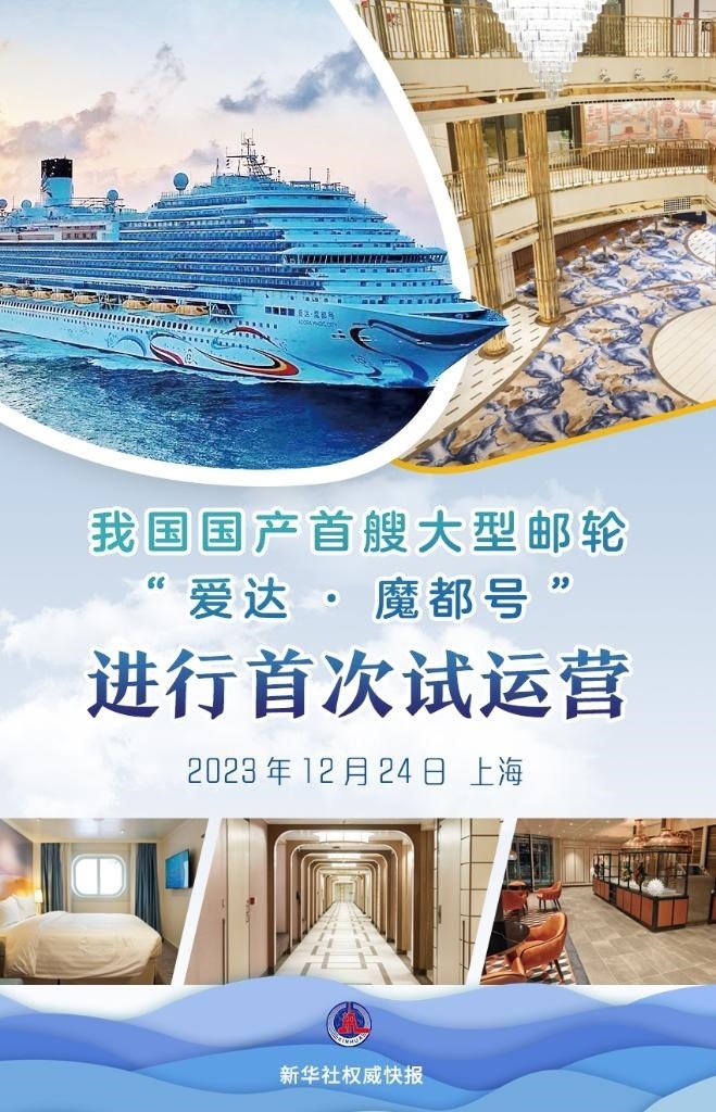 新華社上海12月24日電(記者賈遠(yuǎn)琨、張辛欣)12月24日,國產(chǎn)首艘大型郵輪“愛達(dá)·魔都號”在上海吳淞口國際郵輪港離港出海,進(jìn)行首次試運(yùn)營。