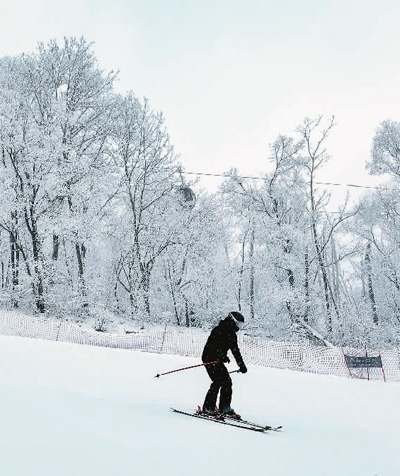 吉林省吉林市萬科松花湖度假區(qū),游客在體驗滑雪樂趣。新華社記者 許 暢攝