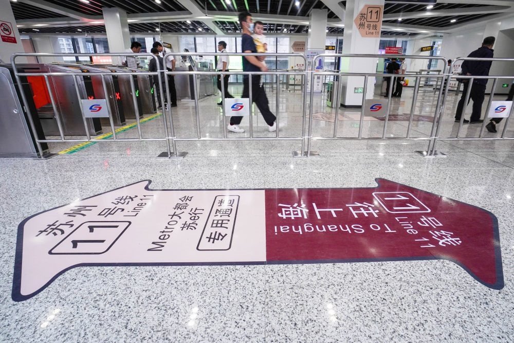 2023年6月24日,乘客在蘇州軌道交通11號(hào)線花橋站進(jìn)站乘車。當(dāng)日,蘇州軌道交通11號(hào)線正式投入運(yùn)營,并與上海軌道交通11號(hào)線實(shí)現(xiàn)無縫換乘,長三角核心城市間首次實(shí)現(xiàn)地鐵系統(tǒng)跨省互聯(lián)互通。新華社記者 李博 攝