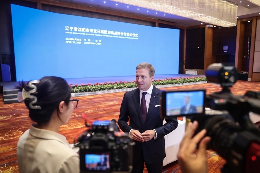 4月26日,寶馬集團(tuán)董事長齊普策接受采訪。新華社記者 潘昱龍 攝