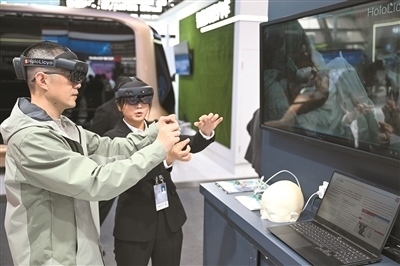 在2024年世界互聯(lián)網(wǎng)大會“互聯(lián)網(wǎng)之光”博覽會上,參觀者體驗一款全息智能醫(yī)學(xué)影像系統(tǒng)做手術(shù)的過程。新華社記者 蔡湘鑫攝