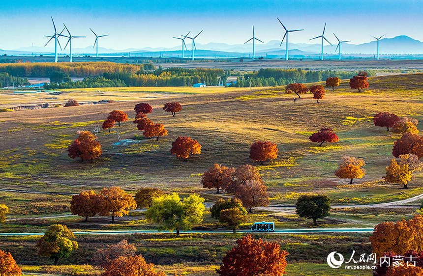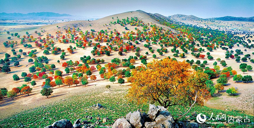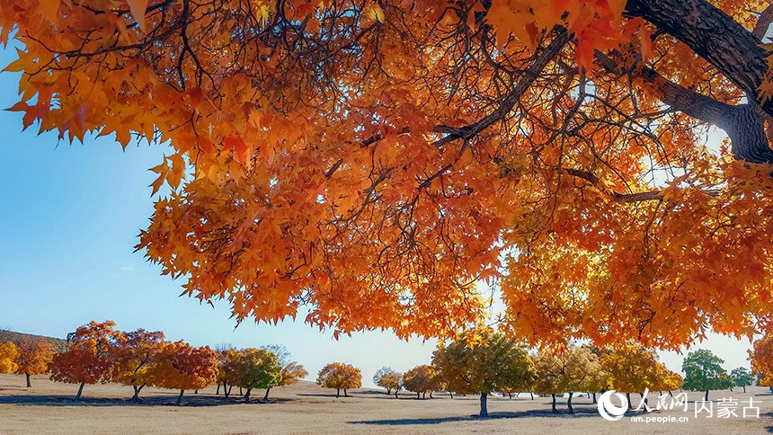 十月深秋,漫山紅遍。內(nèi)蒙古興安盟五角楓迎來最佳觀賞期。颯颯金風(fēng)拂過,五角楓林層林盡染,楓葉形態(tài)各異、五彩繽紛。秋日“楓”景美不勝收。(富麗娟、劉藝琳)
