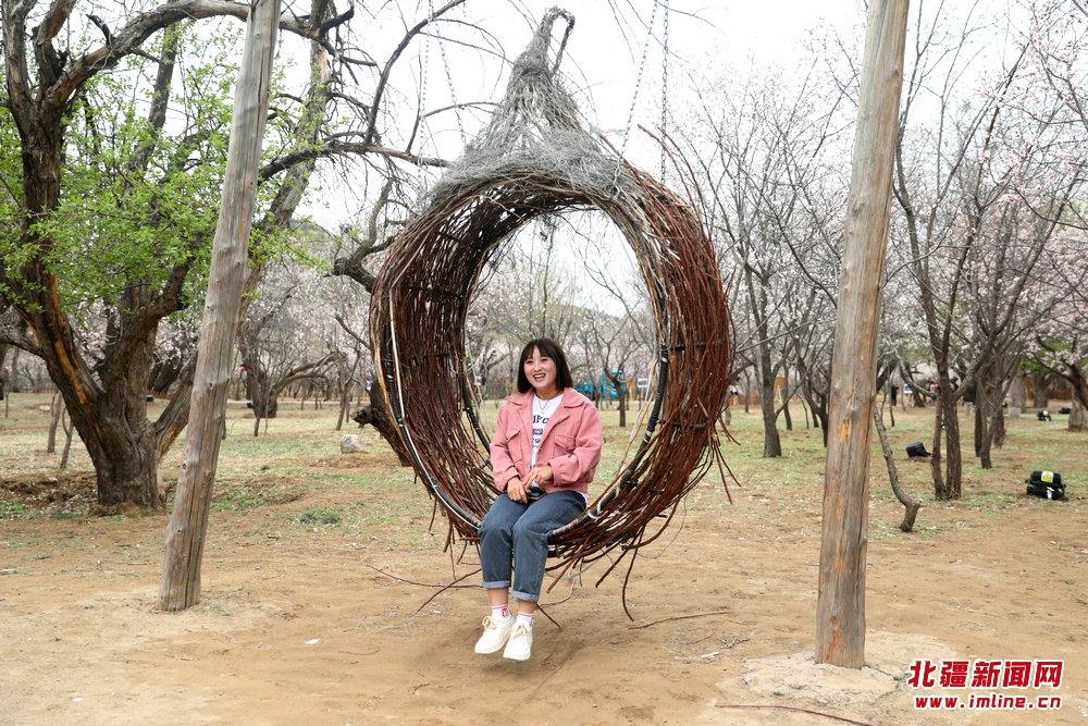 游人在烏素圖老杏園內(nèi)拍照打卡