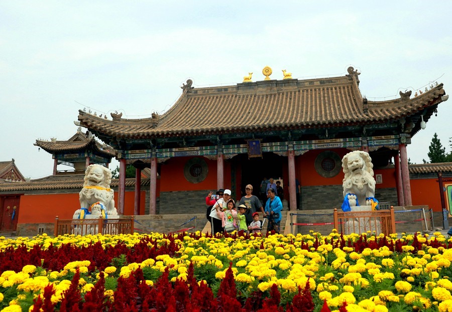 游客在貝子廟前拍照打卡