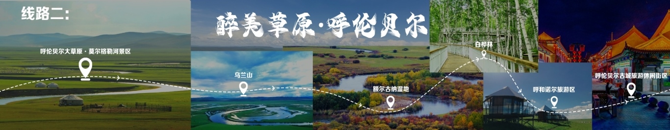 線路行程由海拉爾出發(fā),至呼倫貝爾大草原·莫爾格勒河景區(qū),至烏蘭山,至額爾古納濕地,再至白樺林,再至呼和諾爾旅游區(qū),終點(diǎn)為呼倫貝爾古城旅游休閑街區(qū)。