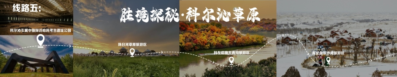 線路行程由通遼出發(fā),至科爾沁左翼中旗探訪哈民考古遺址公園,至珠日河草原旅游區(qū),再至科左后旗大青溝旅游區(qū),終點(diǎn)為庫(kù)倫旗銀沙灣旅游區(qū)。