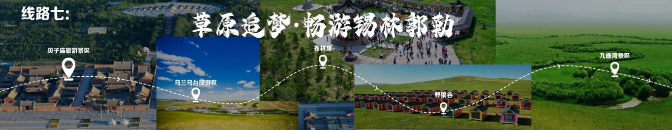 線路行程由錫林浩特出發(fā),至貝子廟旅游景區(qū),至烏蘭烏臺(tái)旅游區(qū),至布林泉,再至野狼谷,終點(diǎn)為九曲灣景區(qū)。