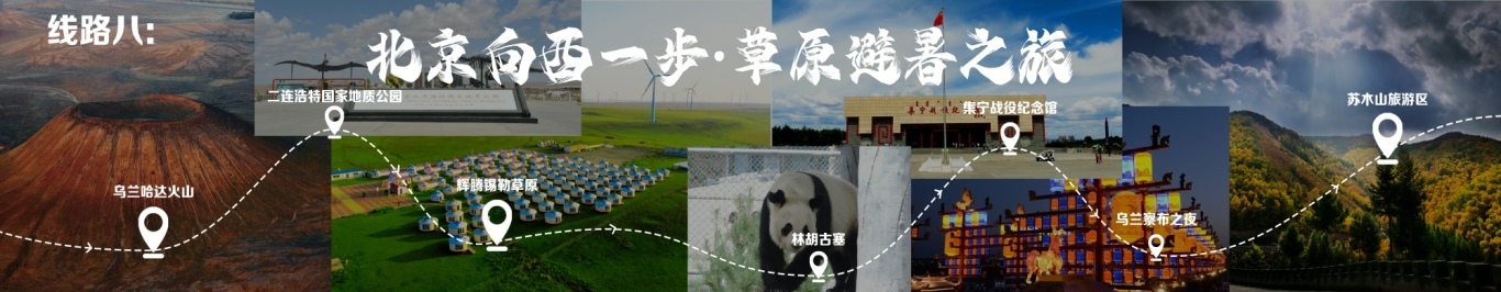 線路行程由北京出發(fā),至烏蘭哈達(dá)火山,至二連浩特國(guó)家地質(zhì)公園,至輝騰錫勒草原,至林胡古塞,再至集寧戰(zhàn)役紀(jì)念館,再至烏蘭察布之夜,終點(diǎn)為蘇木山旅游區(qū)。
