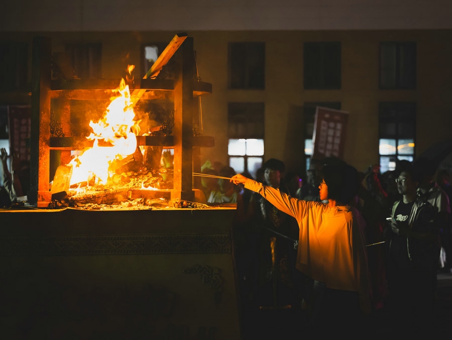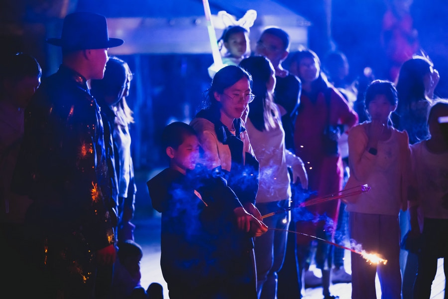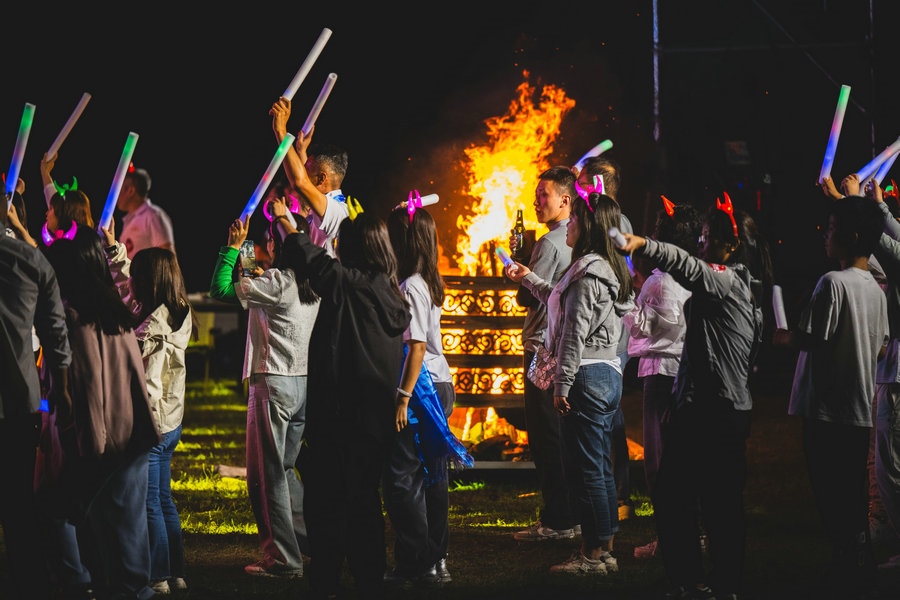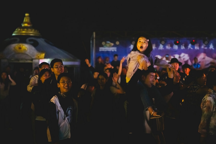 當(dāng)夜幕降臨,熊熊篝火點(diǎn)亮草原夜色,你也可以加入到狂歡的隊伍中,圍著篝火、拉起手,跳起歡快的安代舞,感受豐富多彩的文化娛樂活動,徜徉夜幕下草原歡樂的海洋。(林則志 攝影)