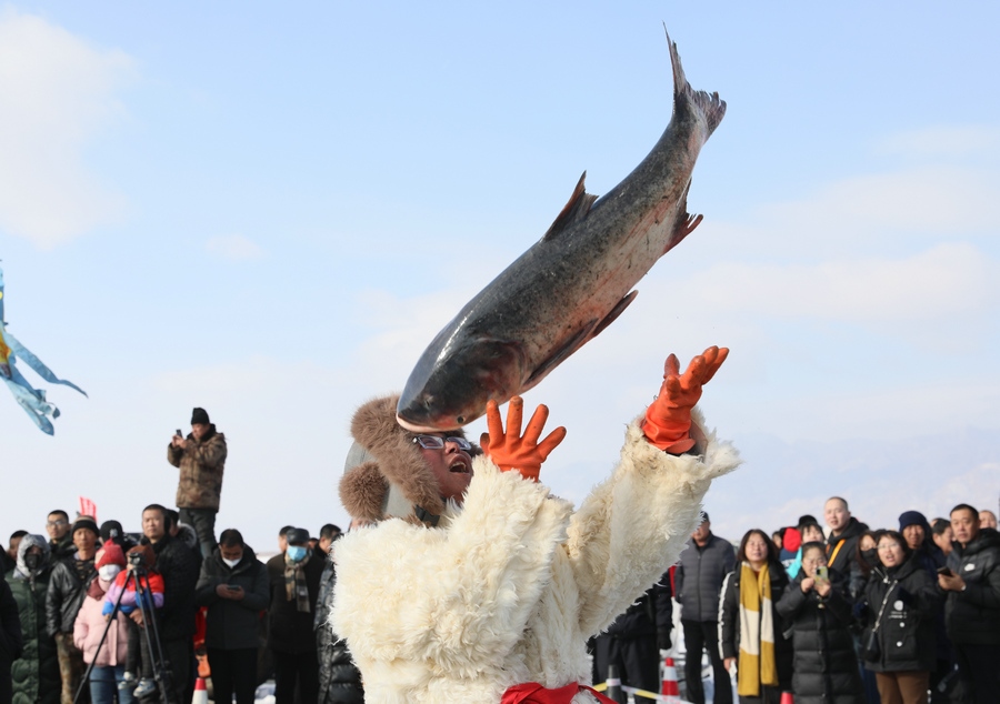 1月4日清晨,游客在呼和浩特“千島湖”圍觀