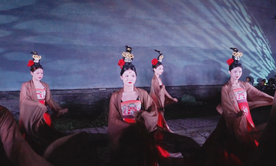 傍晚6時(shí),活動(dòng)在實(shí)景舞蹈《古城賞月》中拉開帷幕。演員們身著飄逸漢服,伴隨悠揚(yáng)古樂翩躚起舞,再現(xiàn)古代市井賞月之景,瞬間將觀眾帶入詩意盎然的歷史長河。隨后,晉劇《繁華》以高亢激越的唱腔、細(xì)膩傳神的表演,展現(xiàn)了晉地戲曲的獨(dú)特韻味,贏得陣陣掌聲。