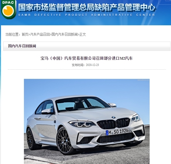 23日,寶馬宣布將自即日起,召回5輛進口M2汽車。