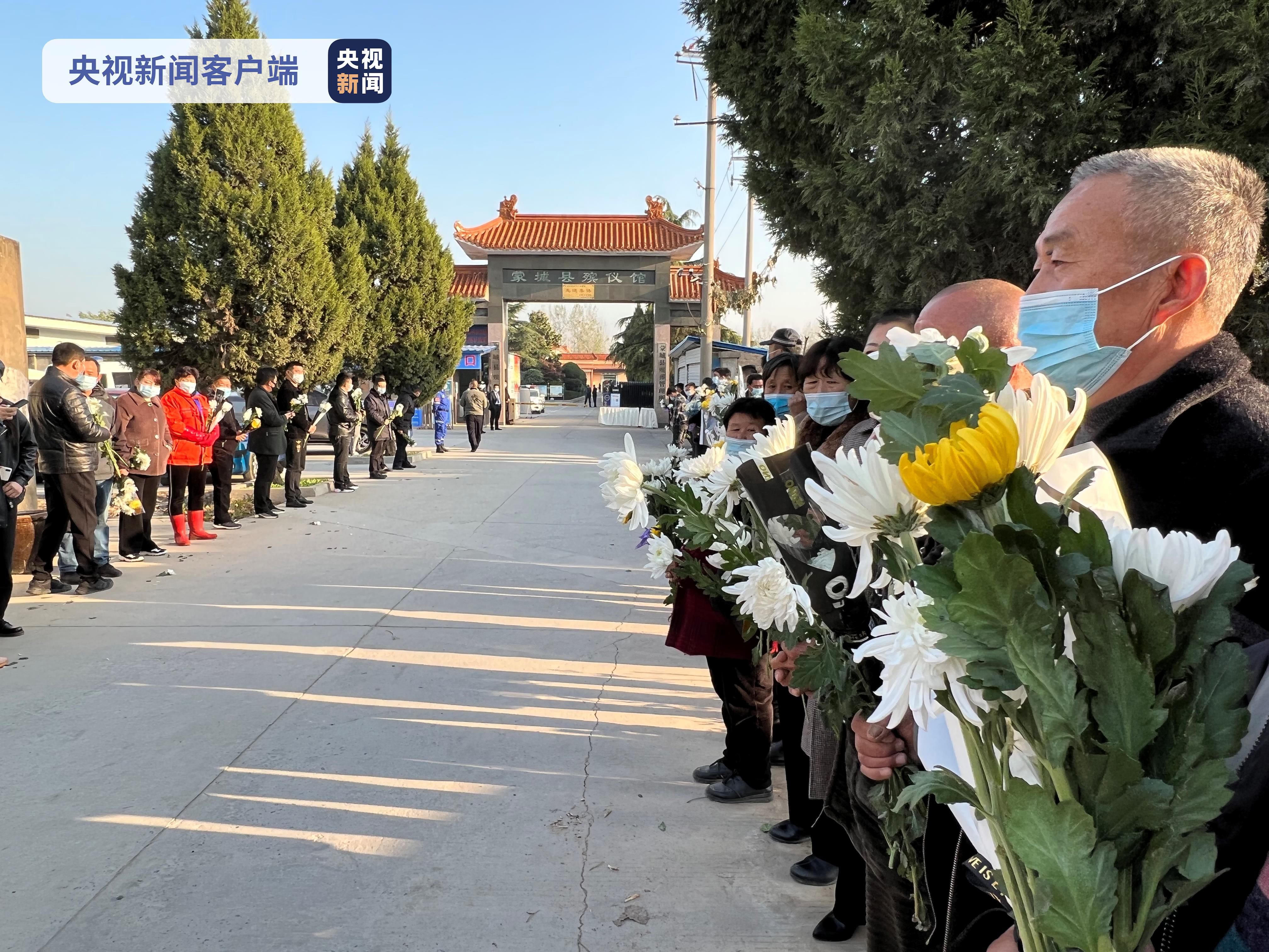 今天早上7時不到,總臺記者在現(xiàn)場看到,很多群眾就自發(fā)來到蒙城縣殯儀館的門口,大家手持鮮花,守候在通往殯儀館的道路兩旁。送別的鮮花上,大家用卡片寫著“英雄,一路走好”等,寄托對犧牲消防員的哀思。