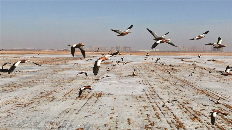 每年3—4月份,大批候鳥從南方來到鄂爾多斯市境內(nèi)黃河濕地上,之后繼續(xù)向北遷飛。近幾年,隨著生態(tài)環(huán)境不斷改善,候鳥數(shù)量與種類逐年增加。圖為達拉特旗境內(nèi),遷徙候鳥正在棲息覓食。(楊耀中)