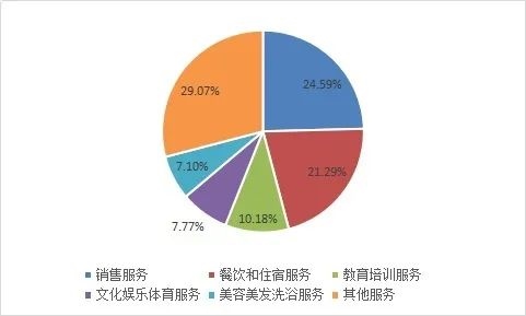 投訴量排在前五位的服務(wù)大類依次為銷售服務(wù)、餐飲和住宿服務(wù)、教育培訓(xùn)服務(wù)、文化娛樂體育服務(wù)、美容美發(fā)洗浴服務(wù)。