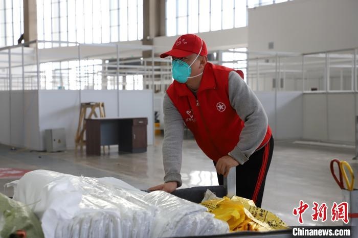 志愿者的第一站,楊建江和64位小伙伴支援了方艙醫(yī)院建設?!澳械呢撠煱徇\床、垃圾箱、床頭柜,女的負責鋪床、打掃衛(wèi)生?!睏罱ńf,從10點集合到22點回家,他們當天共為方艙醫(yī)院鋪床數(shù)百張。