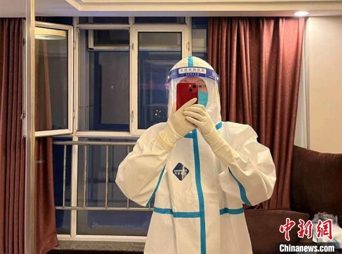 隔離期滿,郭佳煌選擇成為酒店防疫志愿者,工作時間是12點到24點。“中間有4個小時休息,我不覺得辛苦,反而覺得很有意義,希望所有人都能夠團結起來,為抗擊疫情貢獻自己的力量?!惫鸦驼f。