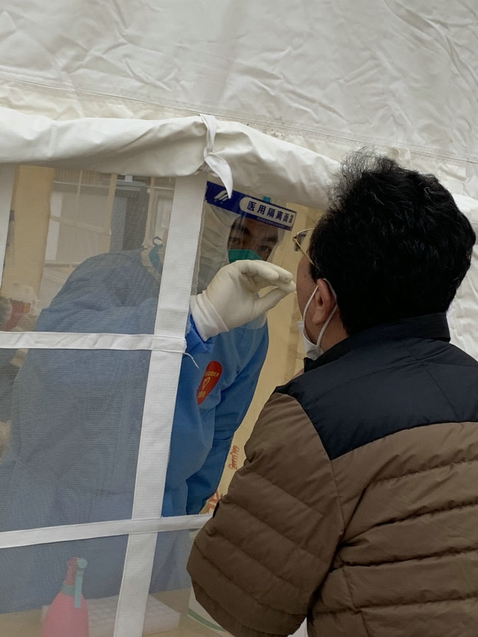 “我加入團隊的時候,小區(qū)正好出現(xiàn)了陽性感染者,這個時期是最困難的。我就想,既然選擇了做這個事,就要義無反顧?!睆埿∮抡f,“那會兒都是前一天晚上才通知第二天核酸要怎么采集,我們就當(dāng)晚商量第二天在哪兒采集核酸。因為當(dāng)初還沒有搭帳篷,為了快速采集,有時還要增加一組核酸采樣人員,我們還要考慮在哪選址。其實剛開始,真的是特別困難?!?/p>