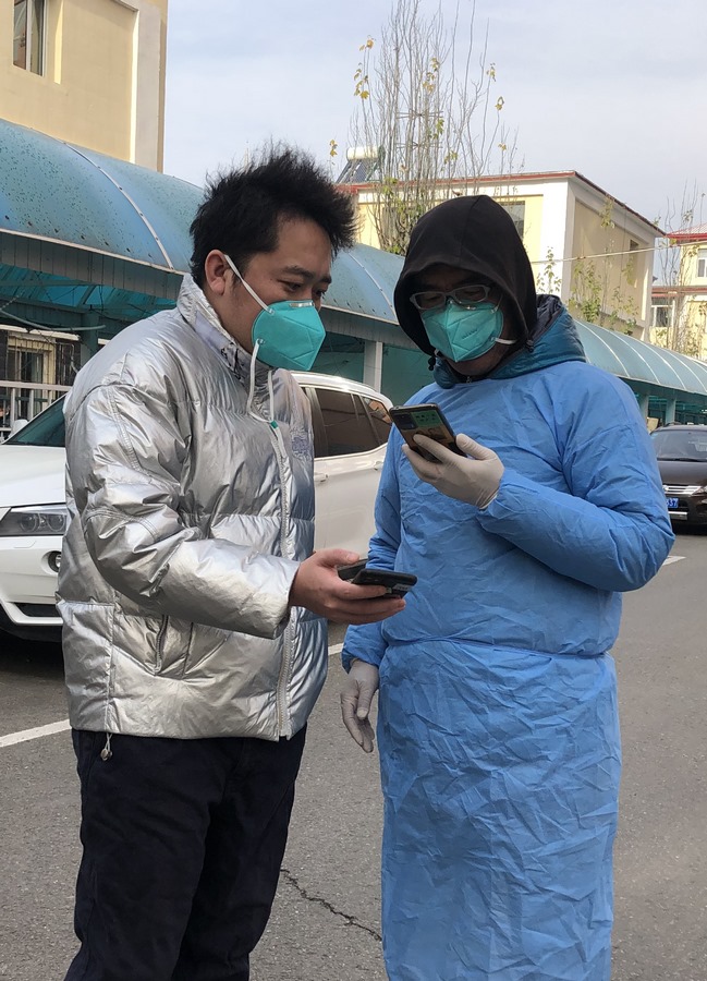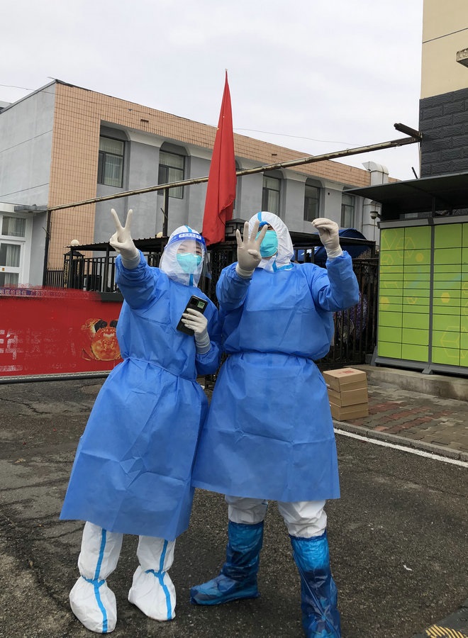 “我們倆都是機關(guān)下沉到社區(qū)的黨員志愿者。剛開始,大家都是自發(fā)的,我們每個人都是這樣,默默奉獻,因為,我既是黨員,也是社區(qū)的居民,這是我應(yīng)該做的?!毖惥暾f。