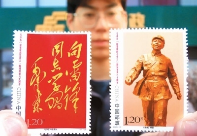 3月5日,中國郵政發(fā)行了一套名為《毛澤東“向雷鋒同志學(xué)習(xí)”題詞發(fā)表六十周年》的紀(jì)念郵票,其中一枚以金色雷鋒塑像為主體圖案。方寸間,雷鋒昂首挺胸,面含微笑,仿佛正闊步走在春風(fēng)中。他的神情歡快溫暖,令人動(dòng)容,讓人懷念。