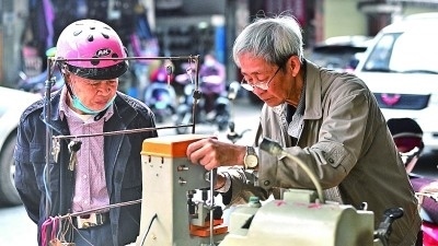 在廣西欽州老街,一位老師傅在給市民配鑰匙。新華社發(fā)