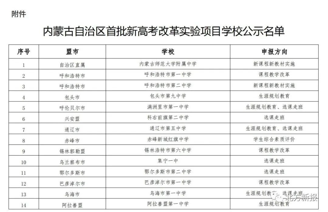 附件:內(nèi)蒙古自治區(qū)首批新高考改革實驗項目學校公示名單