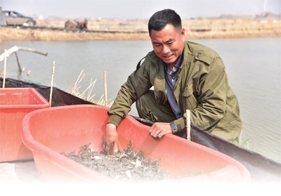吉林省前郭爾羅斯蒙古族自治縣高級(jí)農(nóng)技師劉雙在補(bǔ)充蟹苗。王國(guó)彬攝