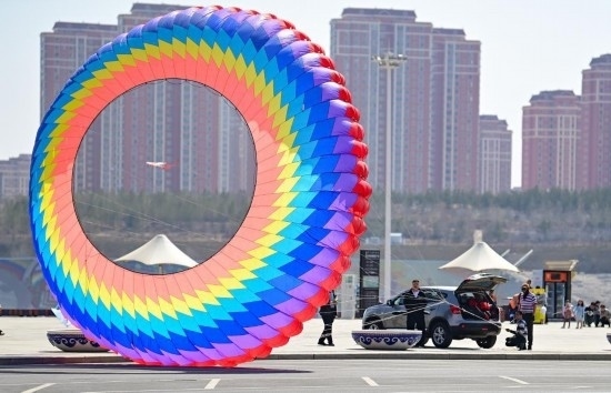 4月1日在康巴什區(qū)亞洲雕塑藝術主題公園拍攝的風箏。
