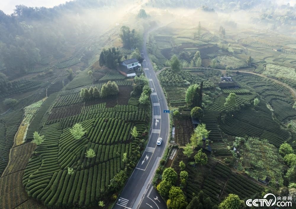 4月12日,成都,邛崍市夾關(guān)鎮(zhèn)鄉(xiāng)村薄霧輕旋,青山蒼翠。