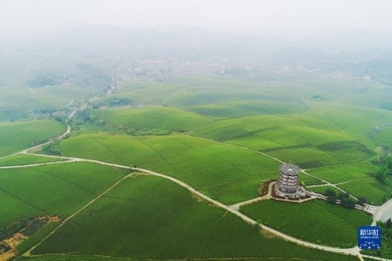2021年4月12日拍攝的貴州省湄潭縣的“萬(wàn)畝茶海”風(fēng)光(無(wú)人機(jī)照片)。