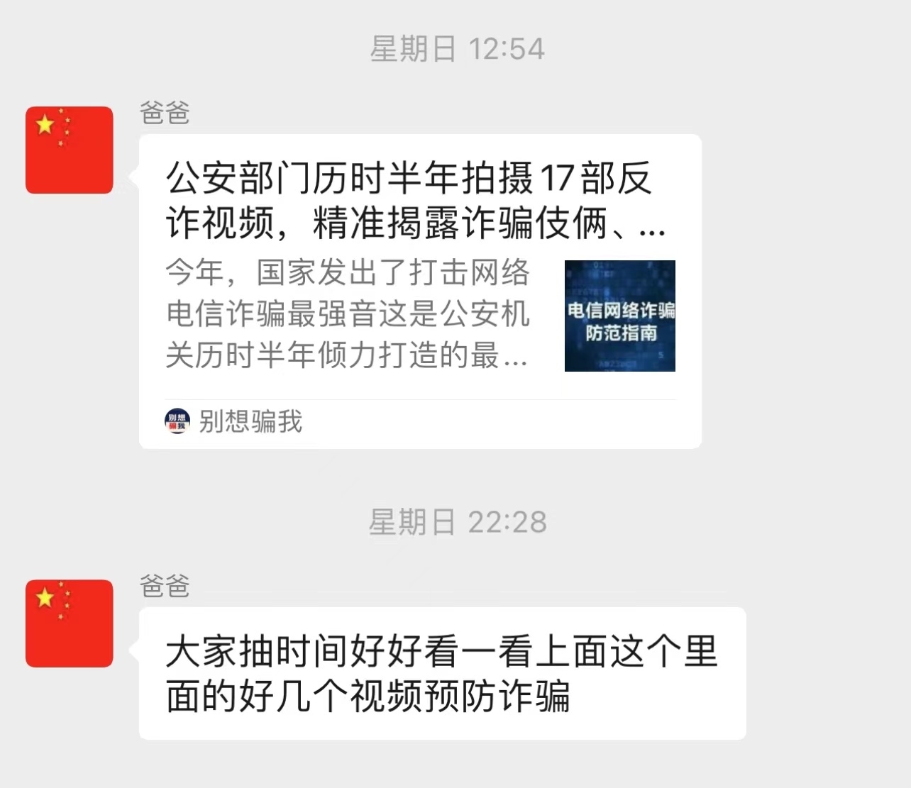 張爸爸表示:“以前我老婆經(jīng)常會發(fā)一些防詐騙的小視頻推薦給大家,但是大概在2019年后,群里一下子冷清起來,很少有人發(fā)消息,我們分享有趣的事、好看的內(nèi)容,除了我女兒就很少有人回復了”。