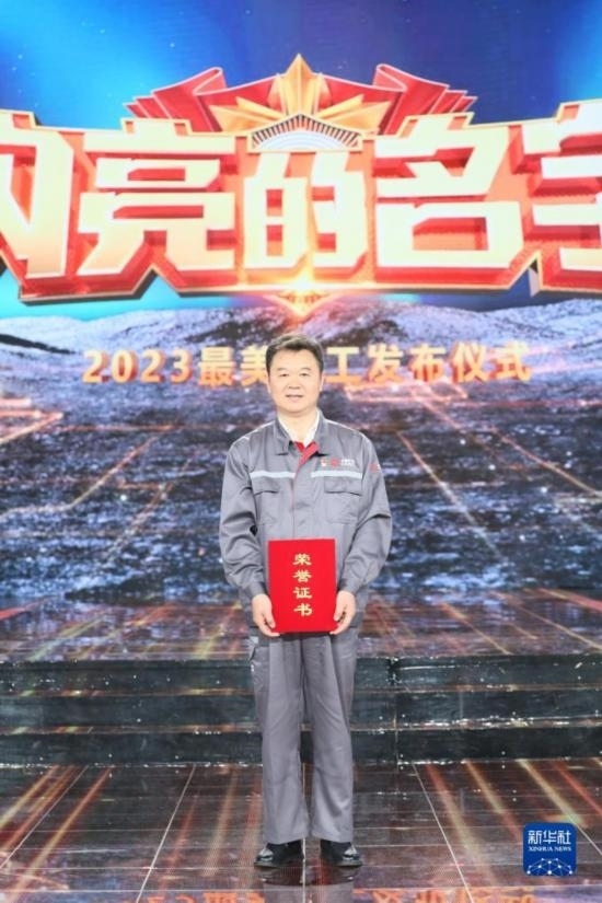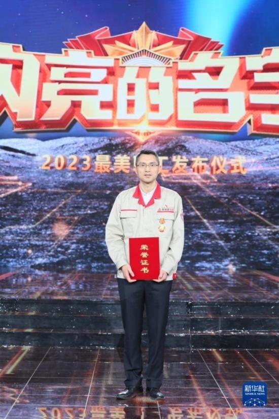 中核陜西鈾濃縮有限公司真空設(shè)備研發(fā)中心首席技師溫偉在“最美職工”發(fā)布儀式上(4月21日攝)。新華社發(fā)(王鑫 攝)