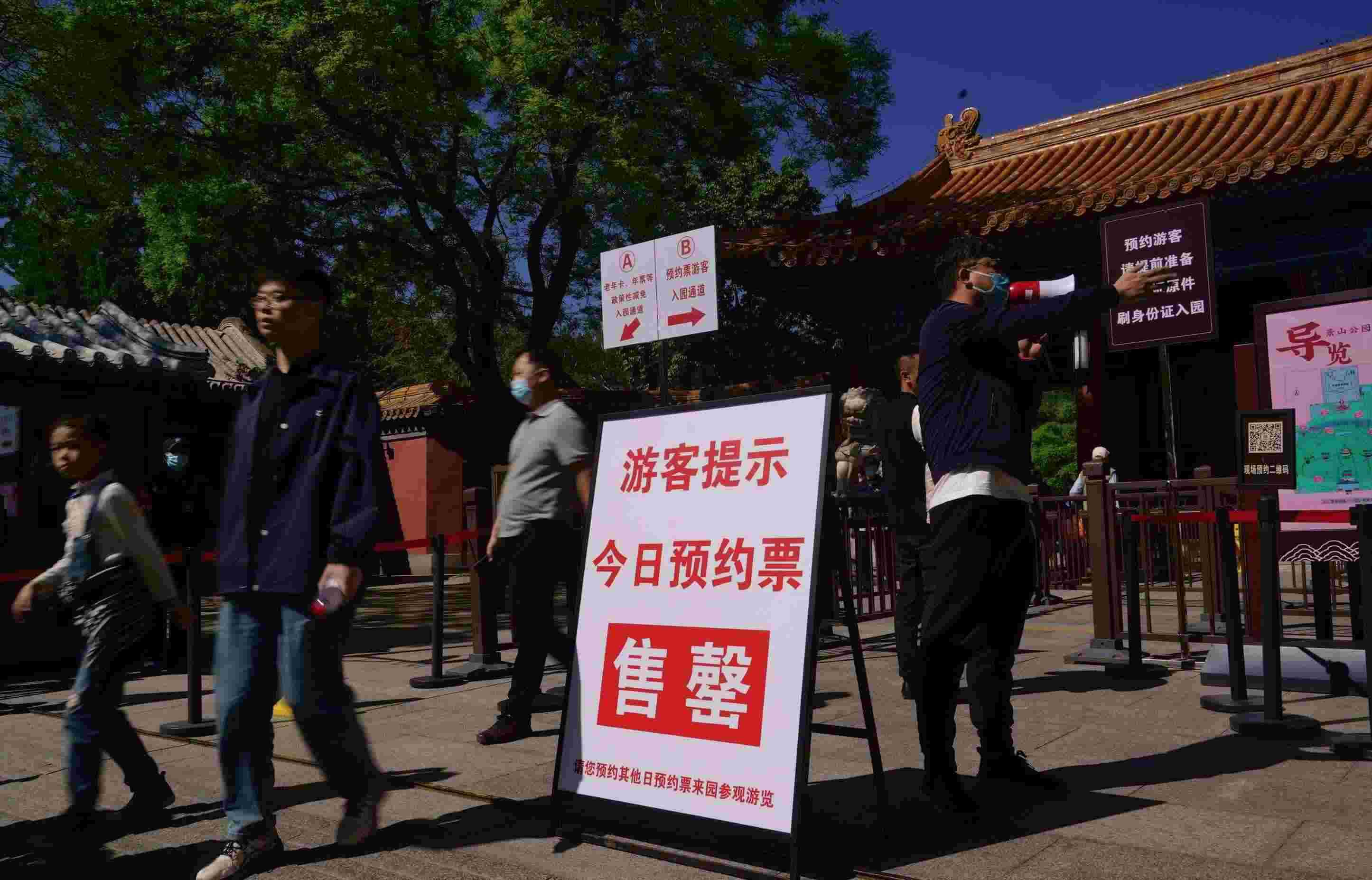 “請(qǐng)大家提前準(zhǔn)備好身份證,老年卡、年卡游客走這邊?!苯裨?時(shí),在景山公園東門(mén),記者看到,公園細(xì)化了門(mén)區(qū)入園通道,開(kāi)設(shè)了老年卡專(zhuān)道,分設(shè)了預(yù)約入園通道,在工作人員的引導(dǎo)和提醒下,游客分道、有序入園。