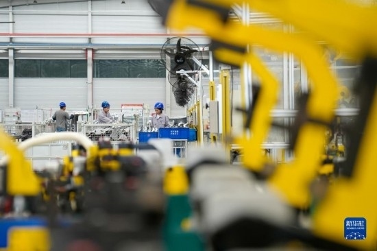 5月4日,在浙江省湖州市長興經(jīng)濟技術(shù)開發(fā)區(qū)一家汽車部件有限公司,工人生產(chǎn)新能源汽車配件。