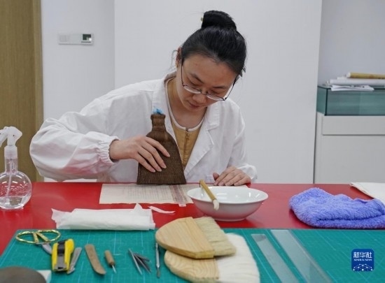 4月28日,在上海市檔案館的保護(hù)技術(shù)部,年輕的檔案修復(fù)師們?cè)诠ぷ髦小?/p>