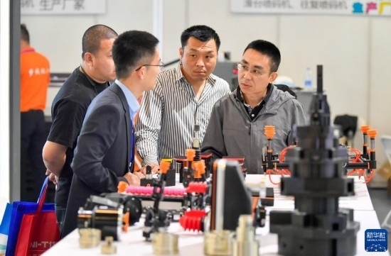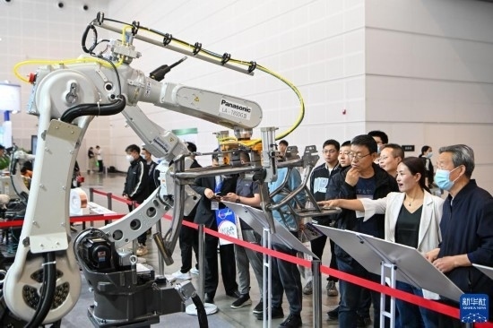 5月8日,在國家會展中心(天津),觀眾參觀展會上展出的工業(yè)設備。