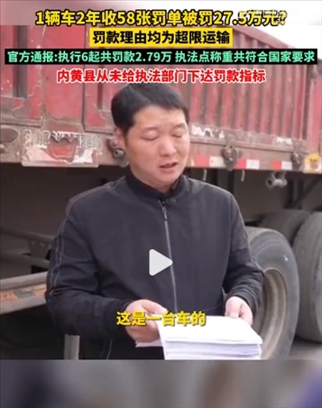 ·官方通報(bào)“貨車2年被罰27.5萬”:執(zhí)行6起共罰款2.79萬,內(nèi)黃縣從未給執(zhí)法部門下達(dá)罰款指標(biāo)。