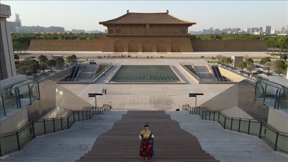 一下火車(chē),乘坐電動(dòng)扶梯從西安站北廣場(chǎng)出站,氣勢(shì)雄渾的大明宮國(guó)家遺址公園丹鳳門(mén)便出現(xiàn)在眼前。