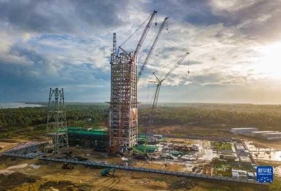 在海南省文昌市拍攝的建設(shè)中的海南商業(yè)航天發(fā)射場1號工位(無人機(jī)照片,5月12日攝)。