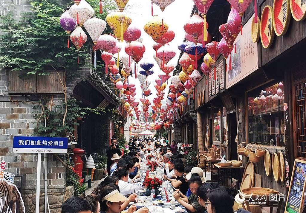 5月19日,寧波市寧海縣前童古鎮(zhèn)豆腐節(jié)長桌宴,吸引八方來客。人民網(wǎng) 章勇濤攝