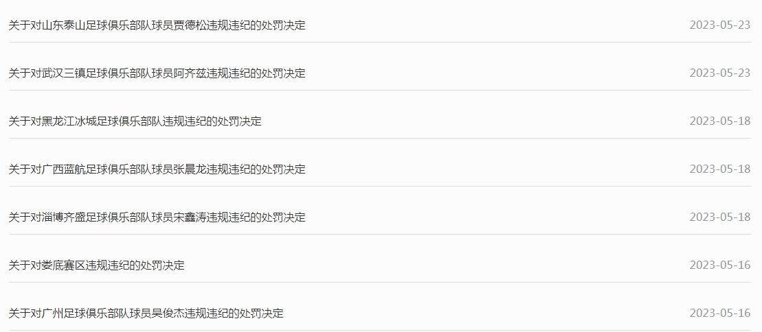 處罰公告。圖片來(lái)源:中國(guó)足協(xié)網(wǎng)站