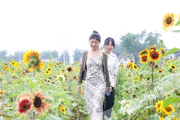 △記者們徜徉在向日葵的花海里。華龍網(wǎng)-新重慶客戶端記者 歐武夷 攝
